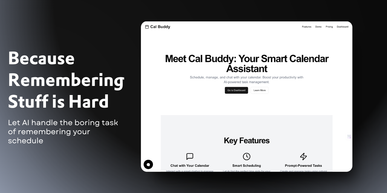 Cal Buddy is a smart calendar assistant that helps you schedule, manage, and chat with your calendar. Boost your productivity with AI-powered task management.